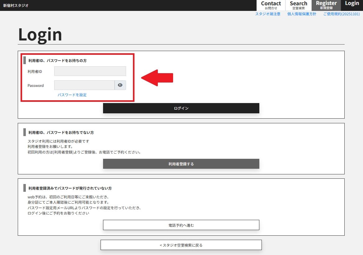 スタジオ空き状況の確認方法