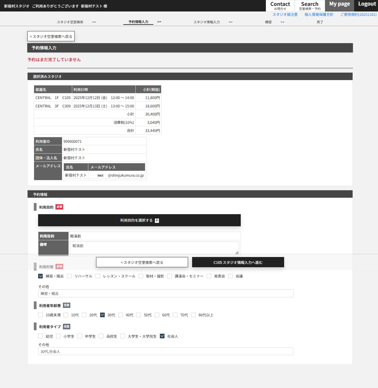 予約情報入力